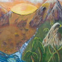 - Acrylic, colored pencil