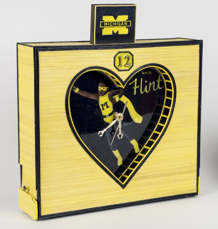 flat reed plyboard, found reed plyboard, clock motor, acrylic paint