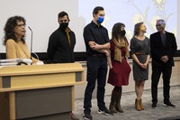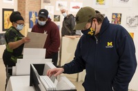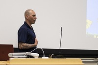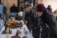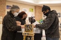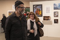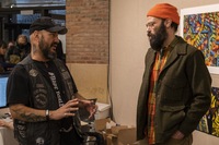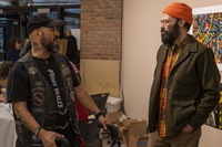 Untitled (Heads) Heads poke out of the sand on a shoreline. -