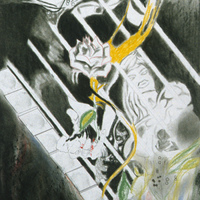 - Abstract art of faces and a rose.