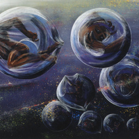 - Bodies float in orbs through a galaxy.