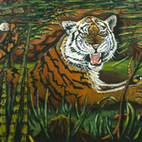 A tiger attacks its prey.