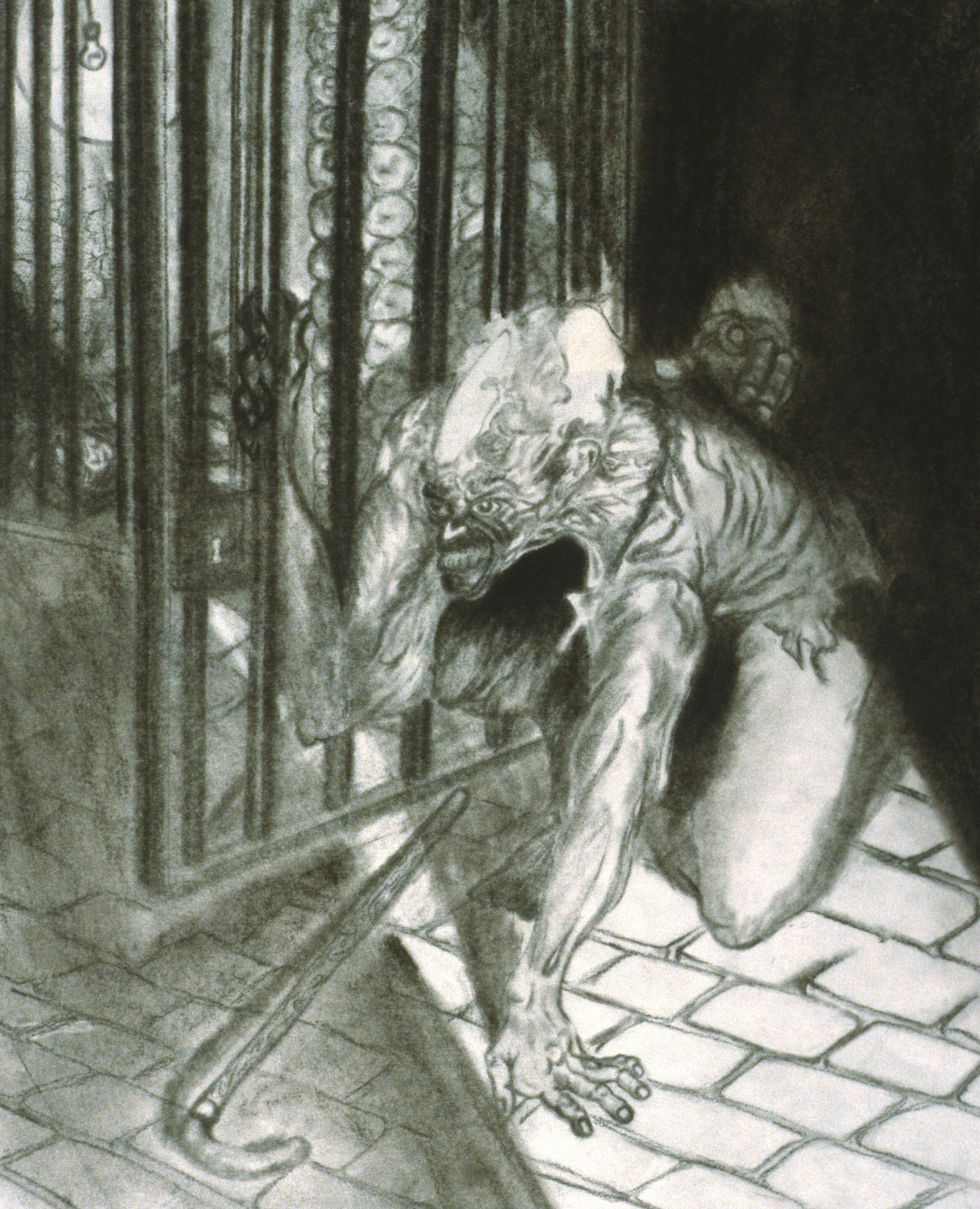 A demon crouches in the corner.