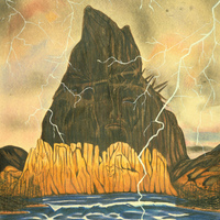 - Lightning bolts strike near mountains.