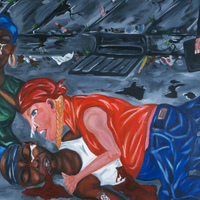 - Friends mourn the loss of a man bleeding on the ground.