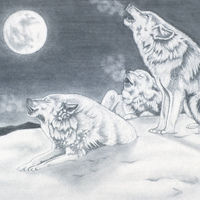 Three wolves howling at the moon.