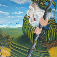 - A wizard looks up at the sky.
