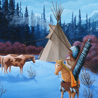 - A native american on horseback leaves camp.