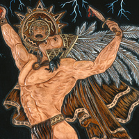 Mayan warrior flexing.