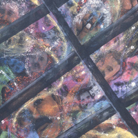 Colorful faces beneath a floor.