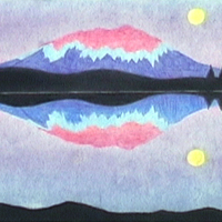 - Reflection of a mountain during sunset into a lake.