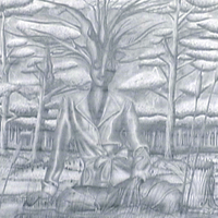 - A woman with a tree head sits in the forest as "mother nature".