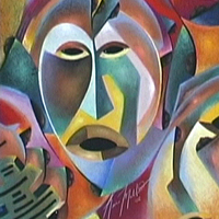 Colorful, abstract faces.
