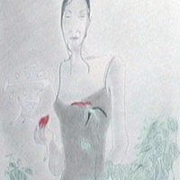- Chinese woman picks a flower.