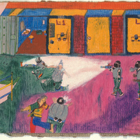 pastel, pen, chalk
