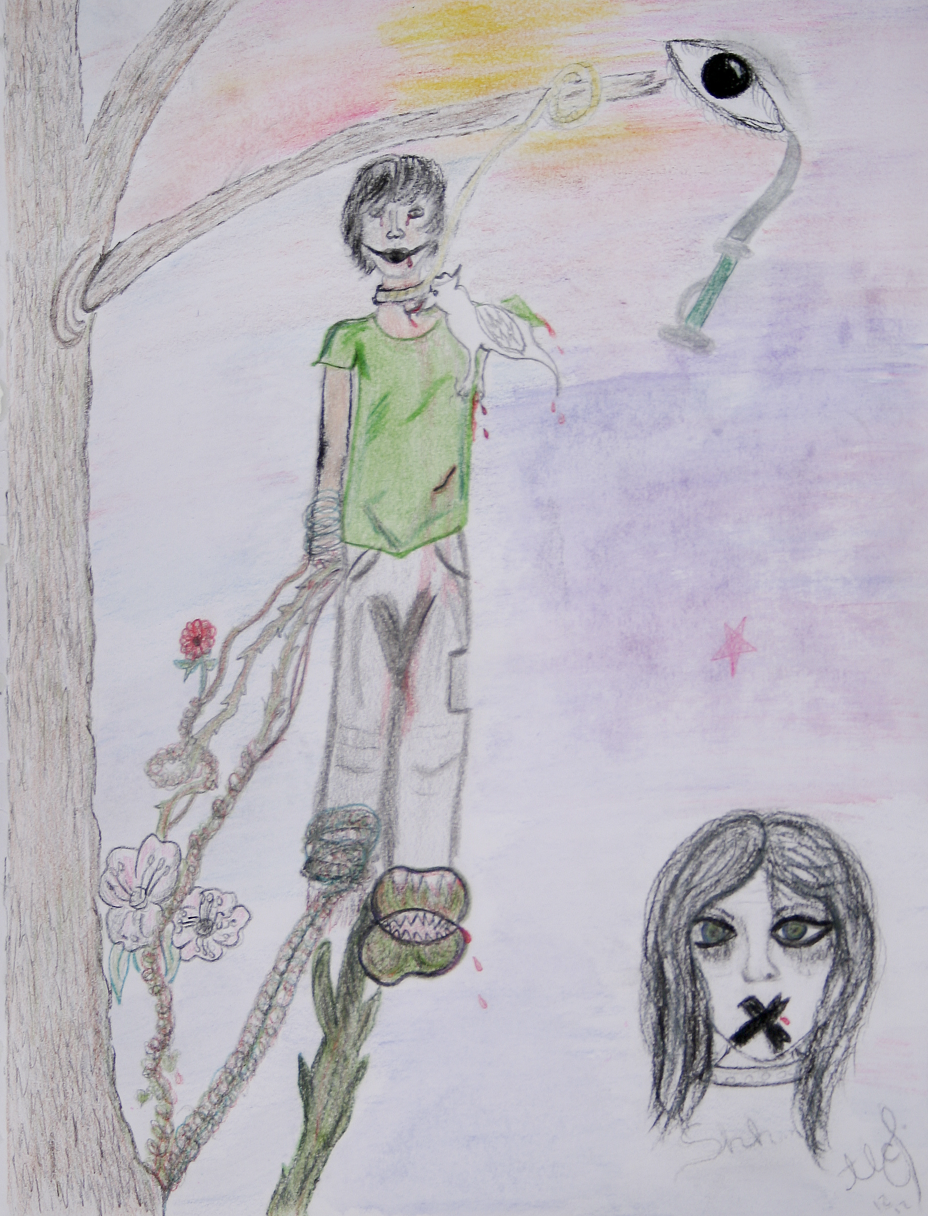 charcoal, colored pencils, pastel