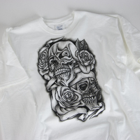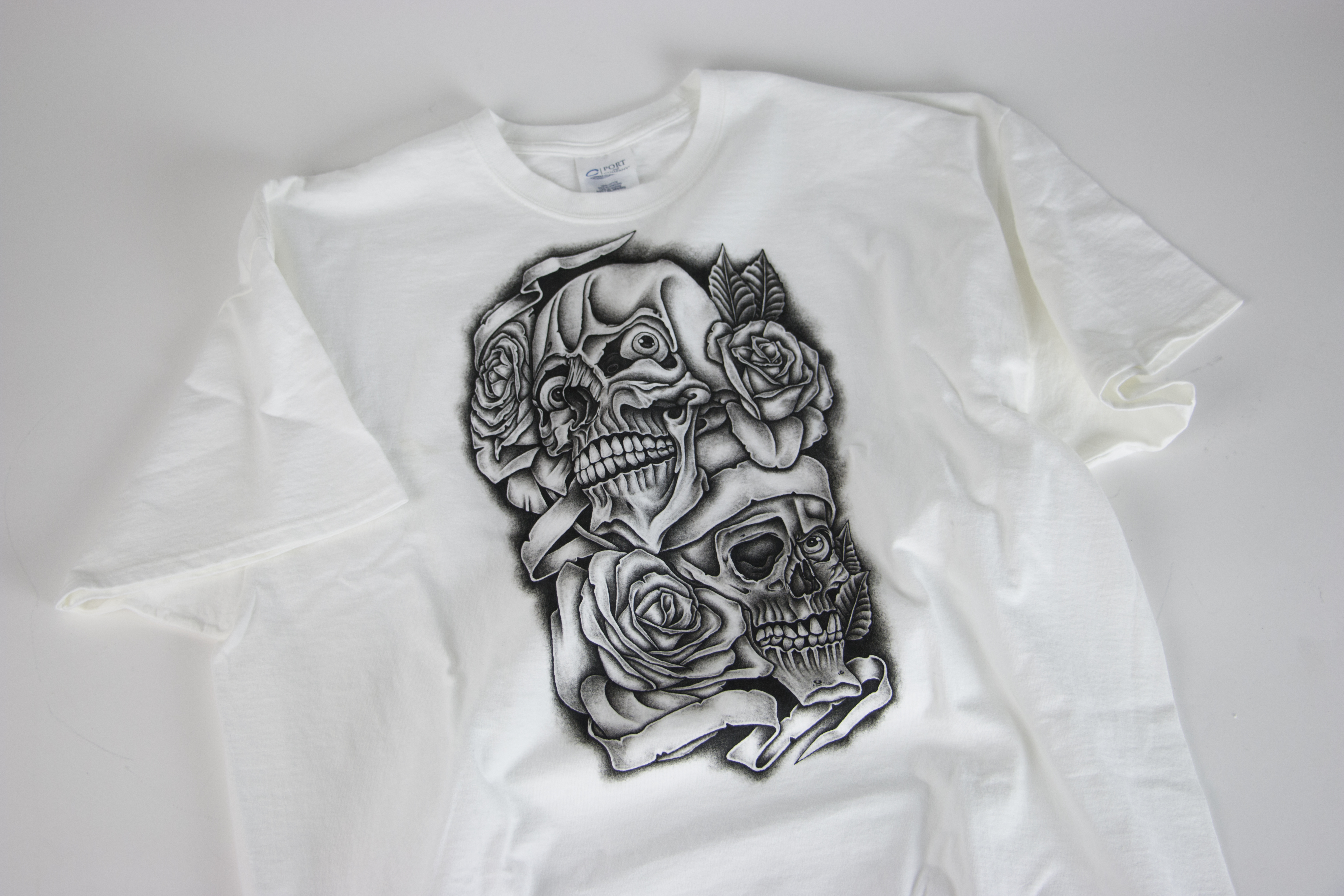 - Acrylic Paint permanently heat set on Cotton T-Shirt
