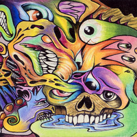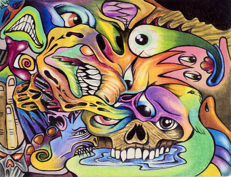 colored pencil, ink on cloth