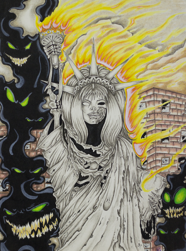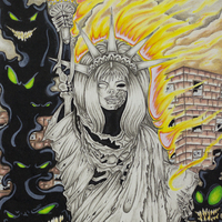 Ink, acrylic, color pencil