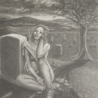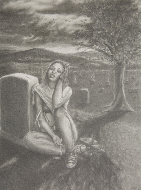 Pencil, charcoal