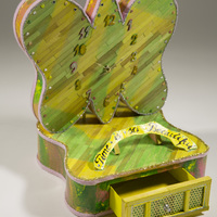 - Cardstock, chipboard, glitter glue, Mod Podge, push pins, paint, clock, stick wood felt