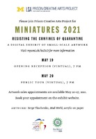 Why Must I Cry (Lies) Disappointment of a Call A figure of a man stands facing a wall on a phone call in a prison facility, his hands on his head. He is wearing a blue and orange prison uniform. Beside him on the wall is a fire exhtinguisher box, and a brown trash can. There is an address written at the top of the painting.