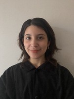 What's Behind the Mask A collage-esque drawing of a woman in masquerade attire holding beads facing an altar of candles, their smoke creating a ghostly figure. Behind the woman, there is a town street receeding, large orange and yellow columns that immenate from the face of Jesus.