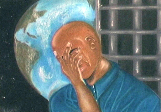 - A prisoner half in prison, half in outer-space.