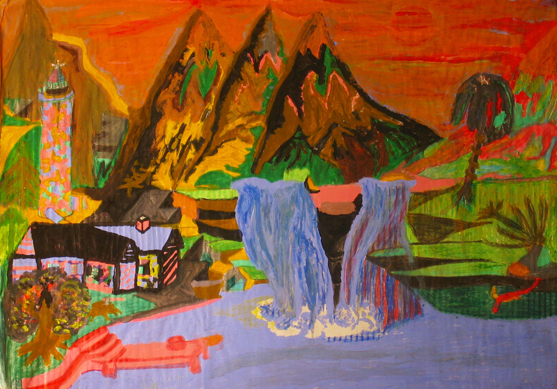 - tempera, ink and crayon