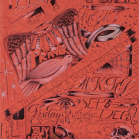 - Black text and imagery on a red background. "is this a bigger mistake or just a bigger problem?" Is the center text and the largest images are a dove and a ssimplified fish symbol.