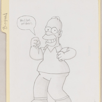 - Color cartoon of Homer Simpson saying 'Man I Love Art Shows'.