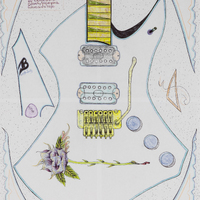 - Color image of a guitar with a rose sitting on the body. A bible verse is in the upper left hand corner.