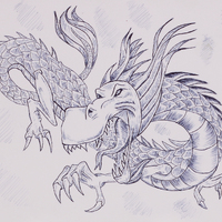 - line drawing, dragon