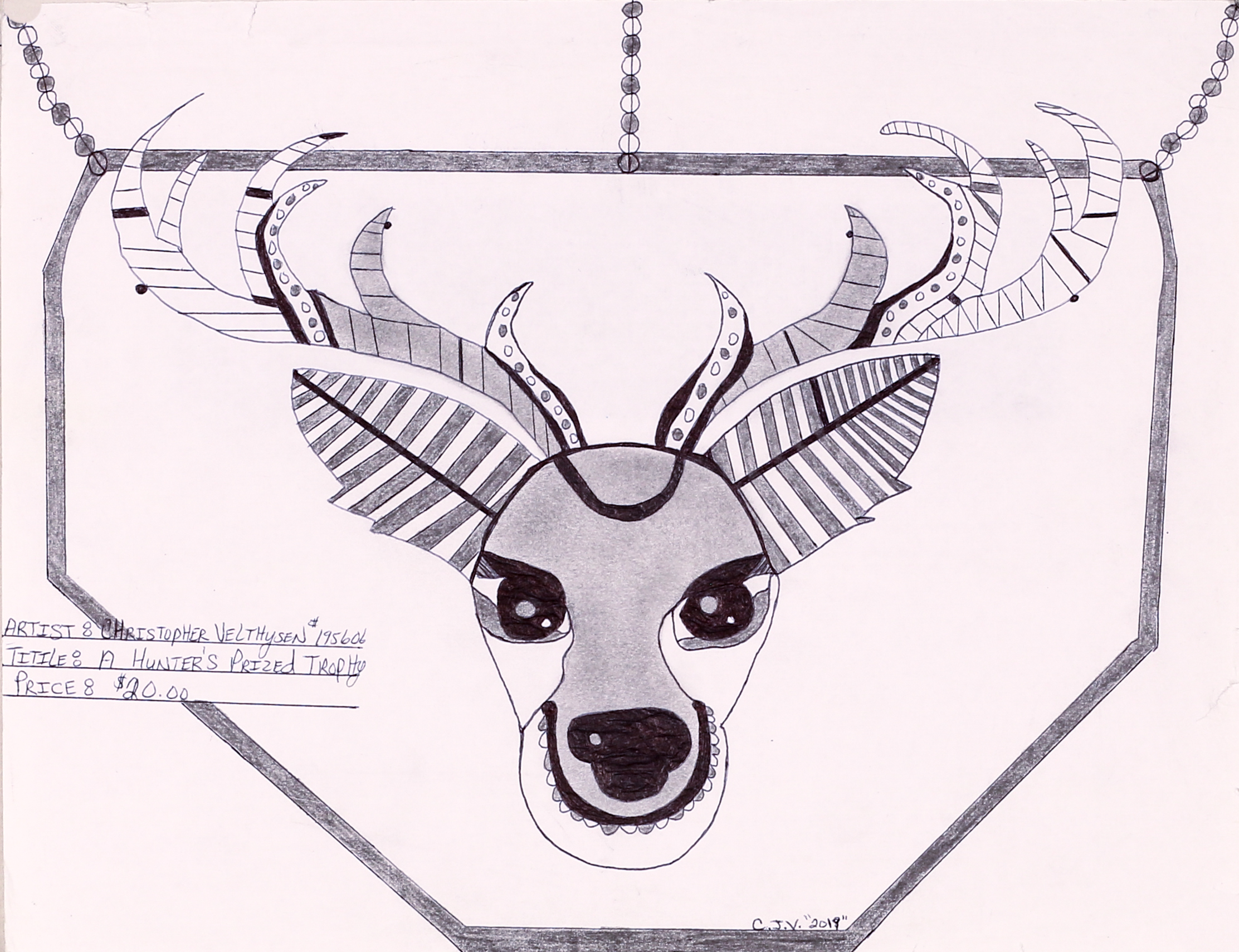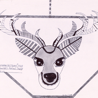 - A cartoon-like drawing of a deer head filled in with geometric patterns