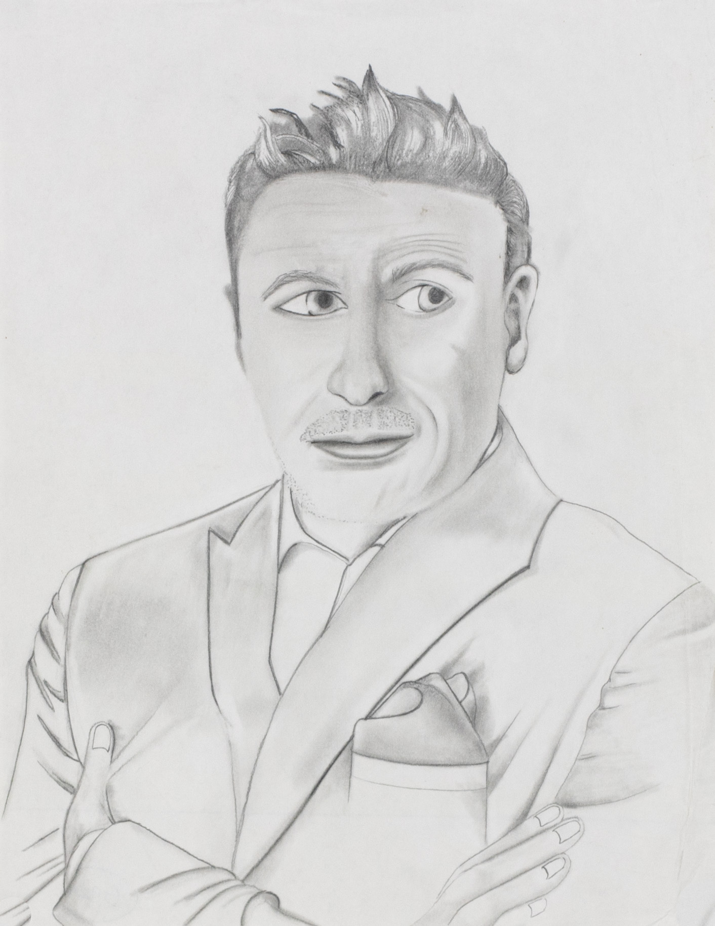 - Portrait of Robert Downey Jr in a suit with his arms crossed