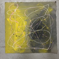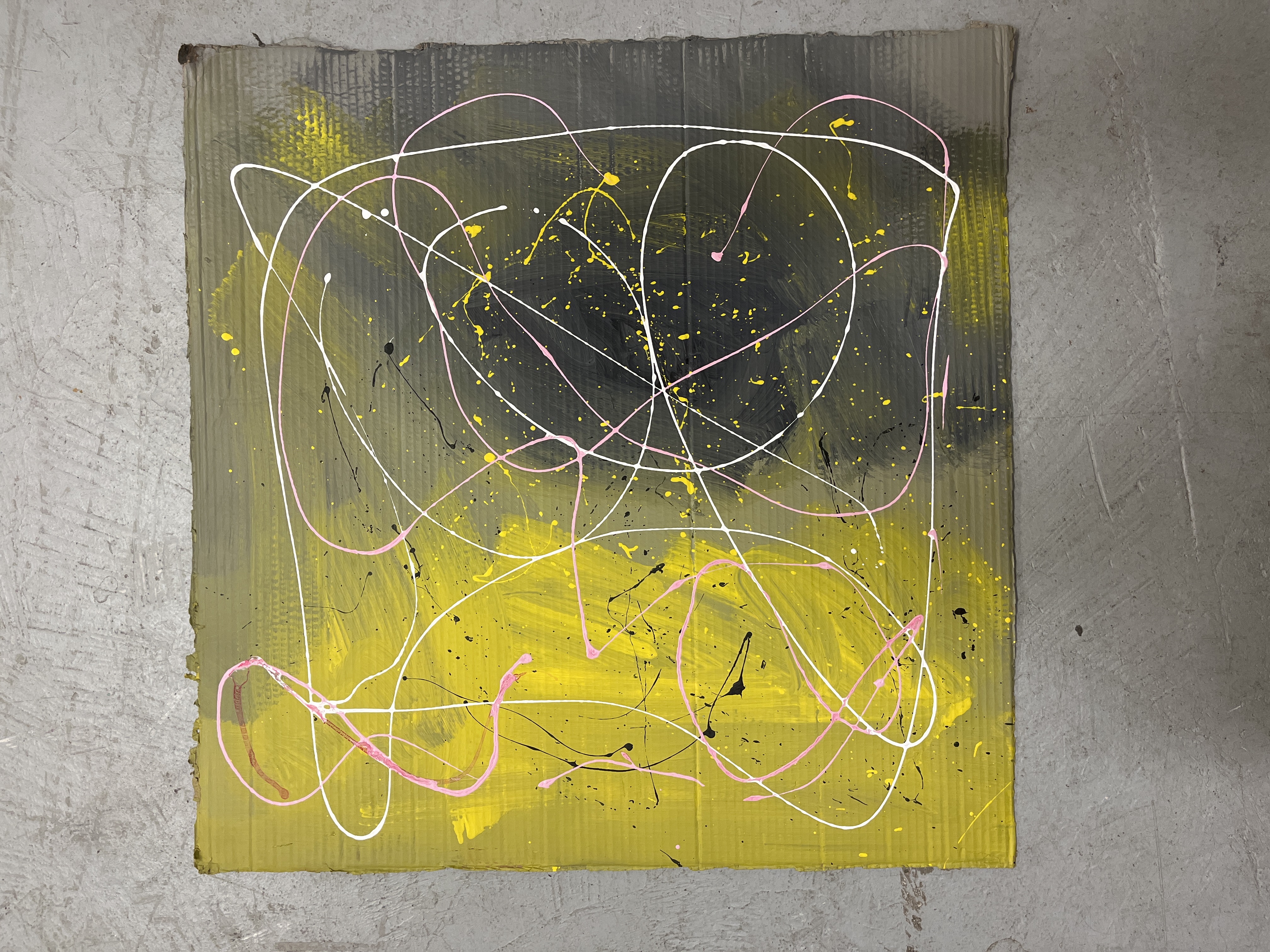 - abstract yellow, pink and white splatter on a grey and yellow background