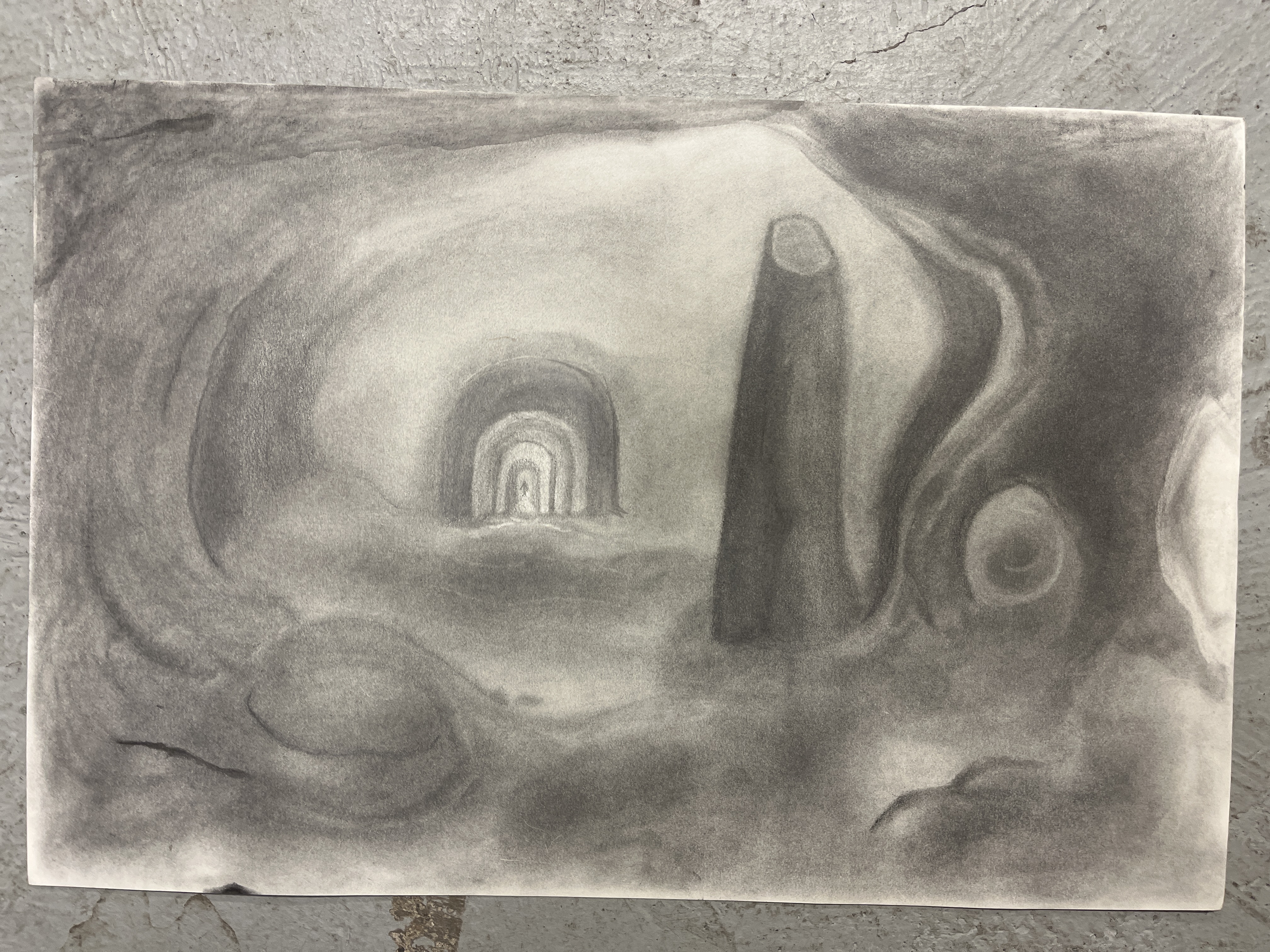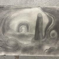 - surrealist, abstract, representational, two dimensional, drawing, pencil, nature