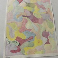 - watercolor rounded abstract shapes in yellow, blue, pink, green, red, and purple (one has dots in the bottom left corner)