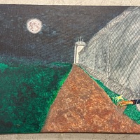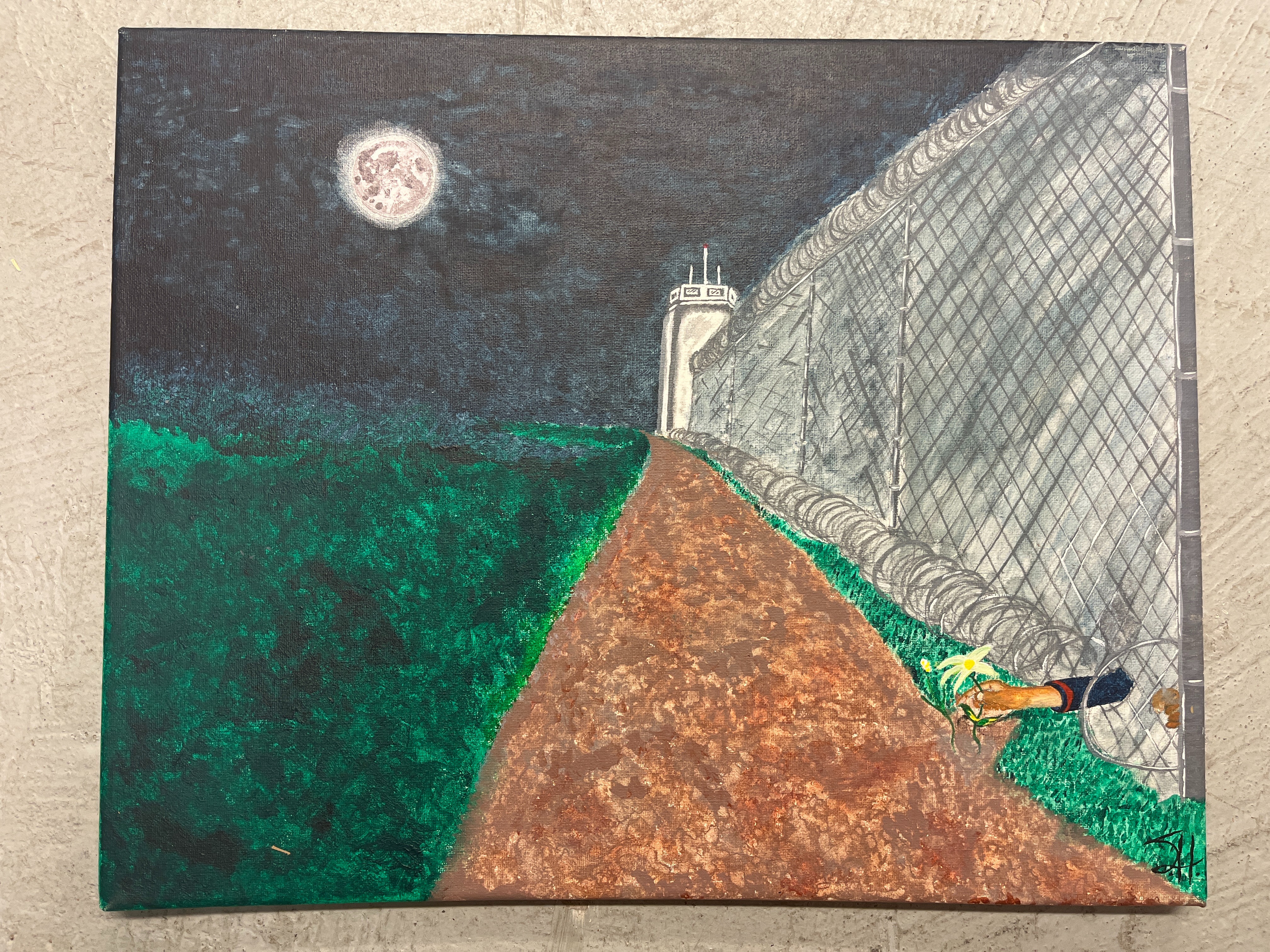 - painting, paint, two dimensional, representational, captivitiy, prison, incarceration, prison suffering