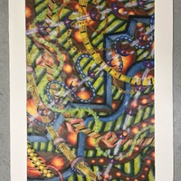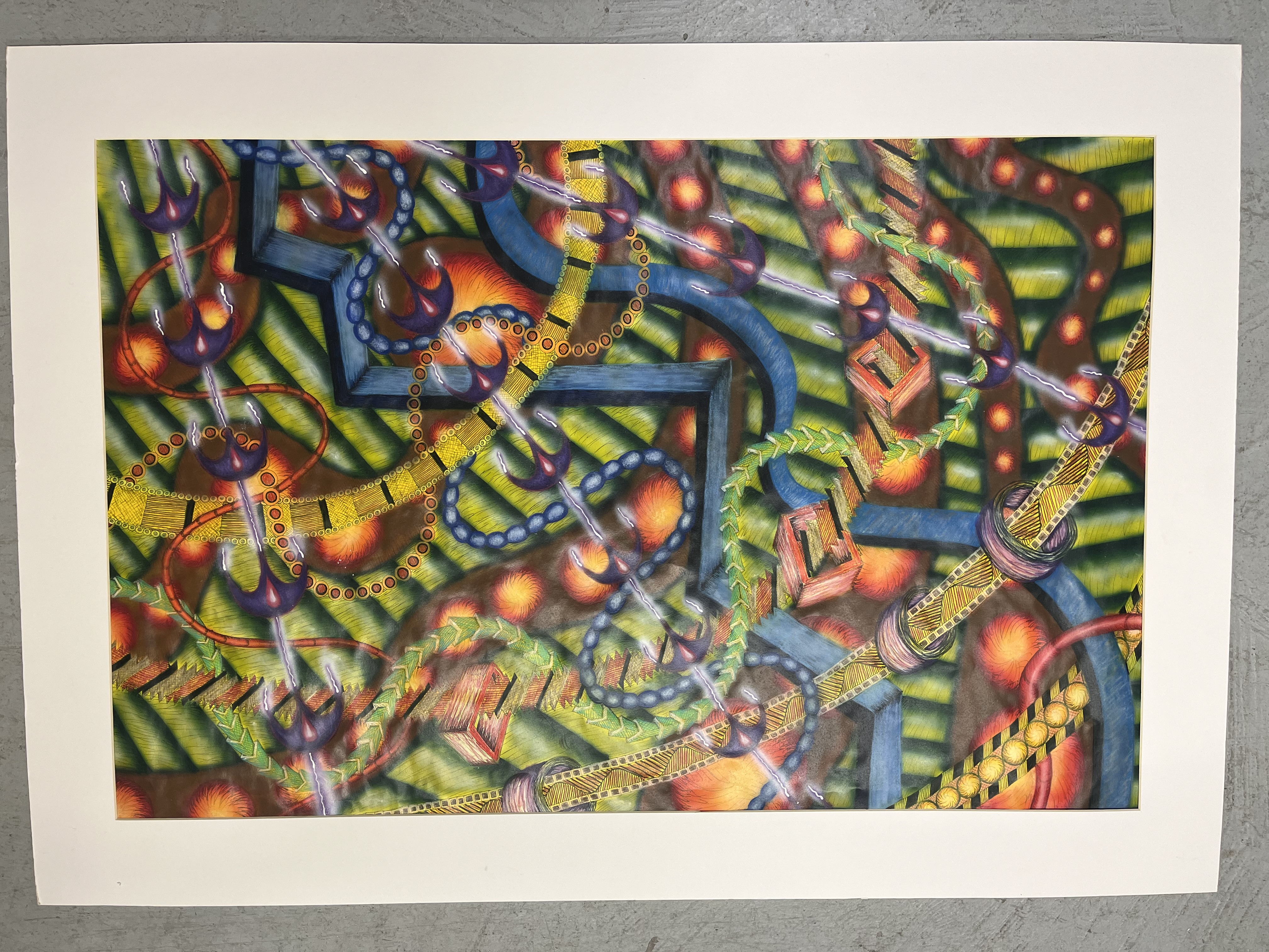 - abstract mullticolored overlapping tubes all with different colors, patterns, and textures