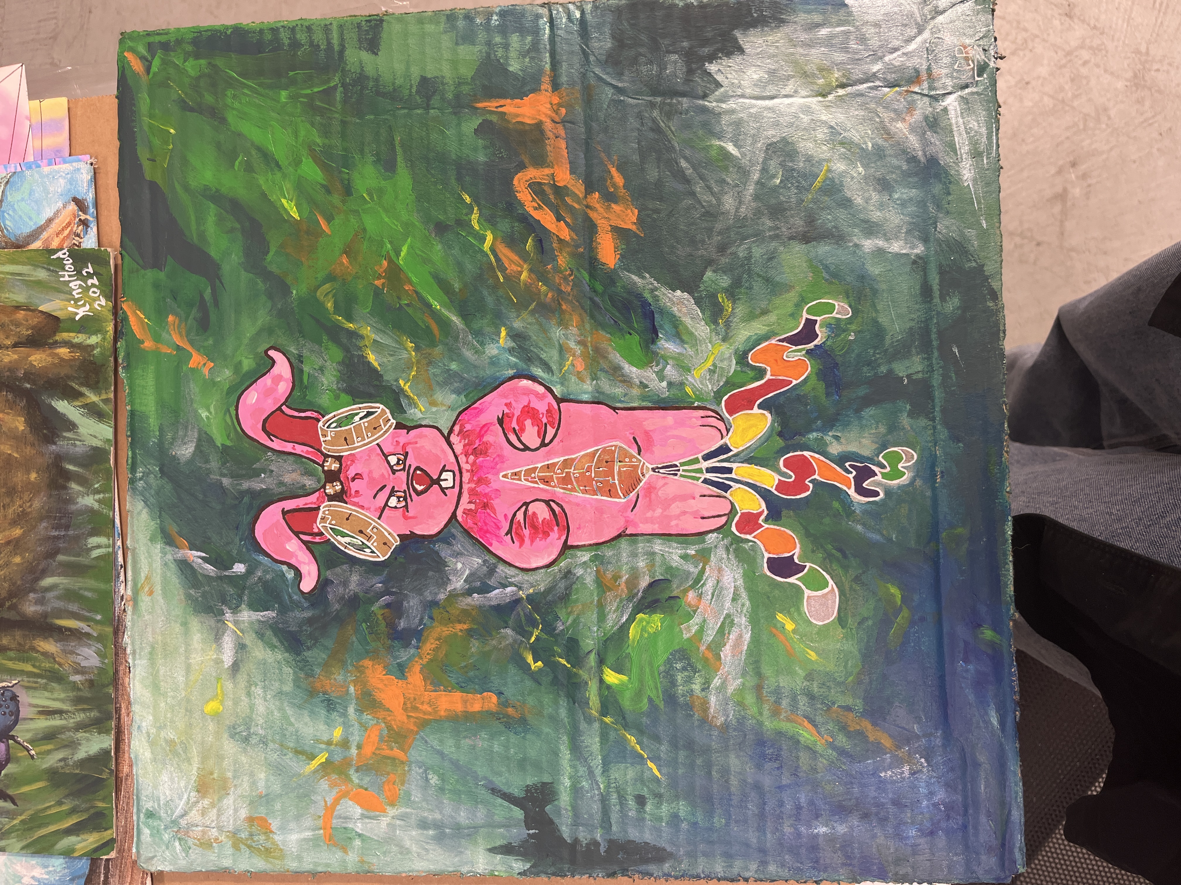 - paint, painting, representational, two dimensional, animal, cartoon, abstract