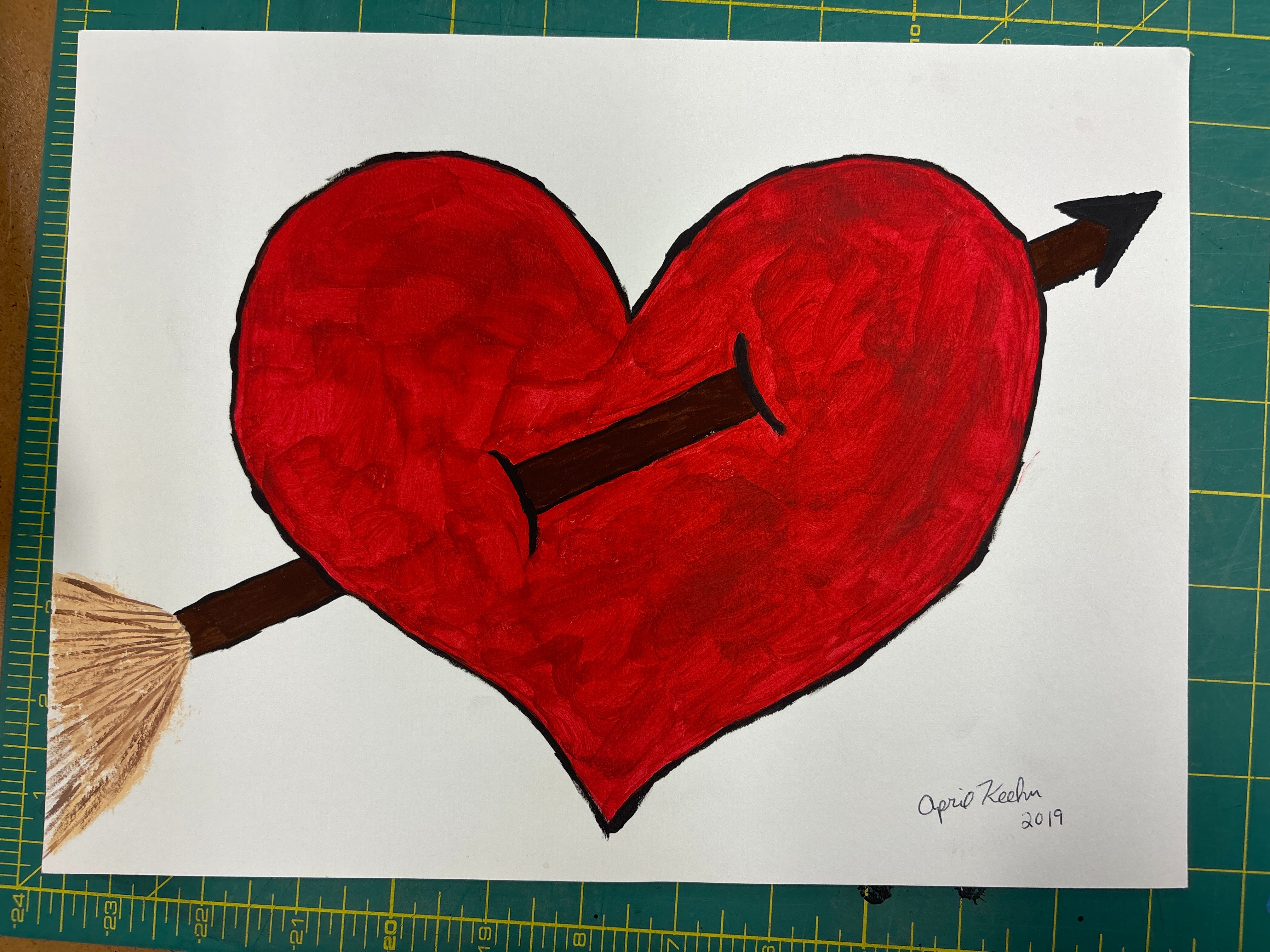 - red heart with brown arrow piercing through it