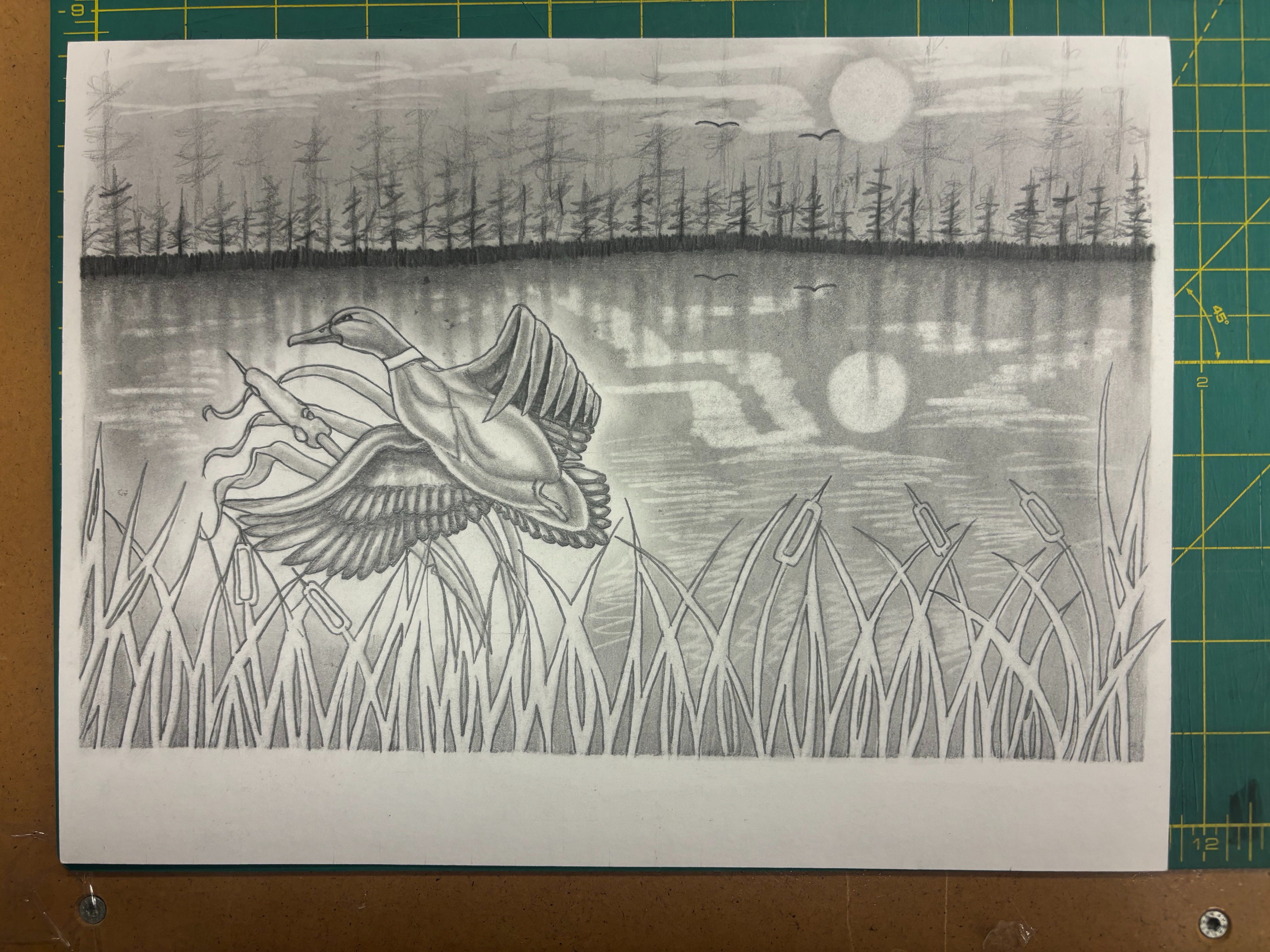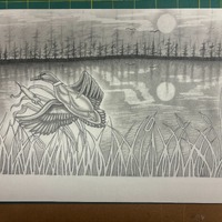 - wildlife, animal, nature, landscape, water, wildlife, two dimensional, representational, drawing, pencil