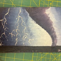 - tornado and lighting in front of a blue and white sky