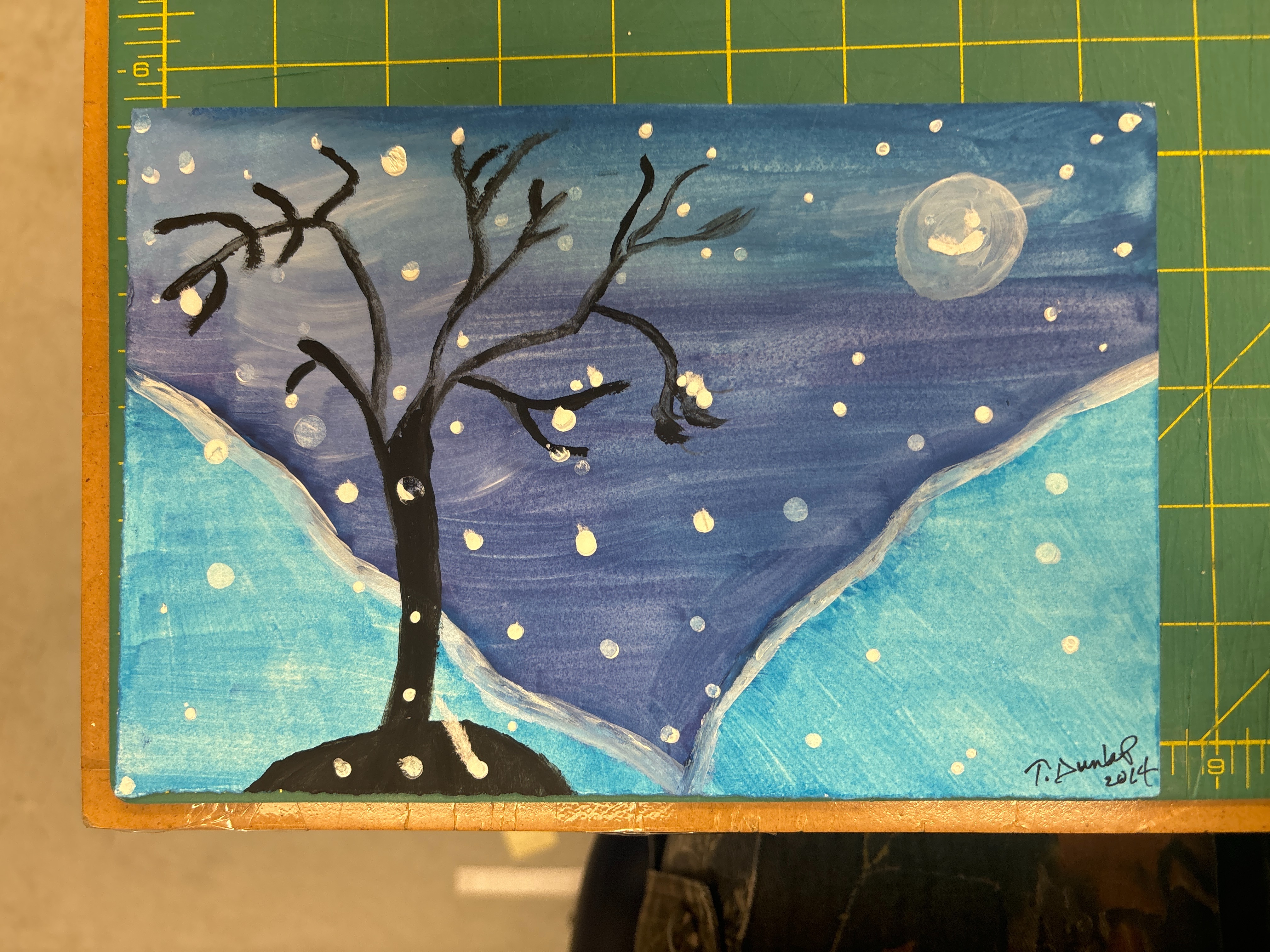 - painting, paint, two dimensional, nature, representational, landscape, winter, seasonal