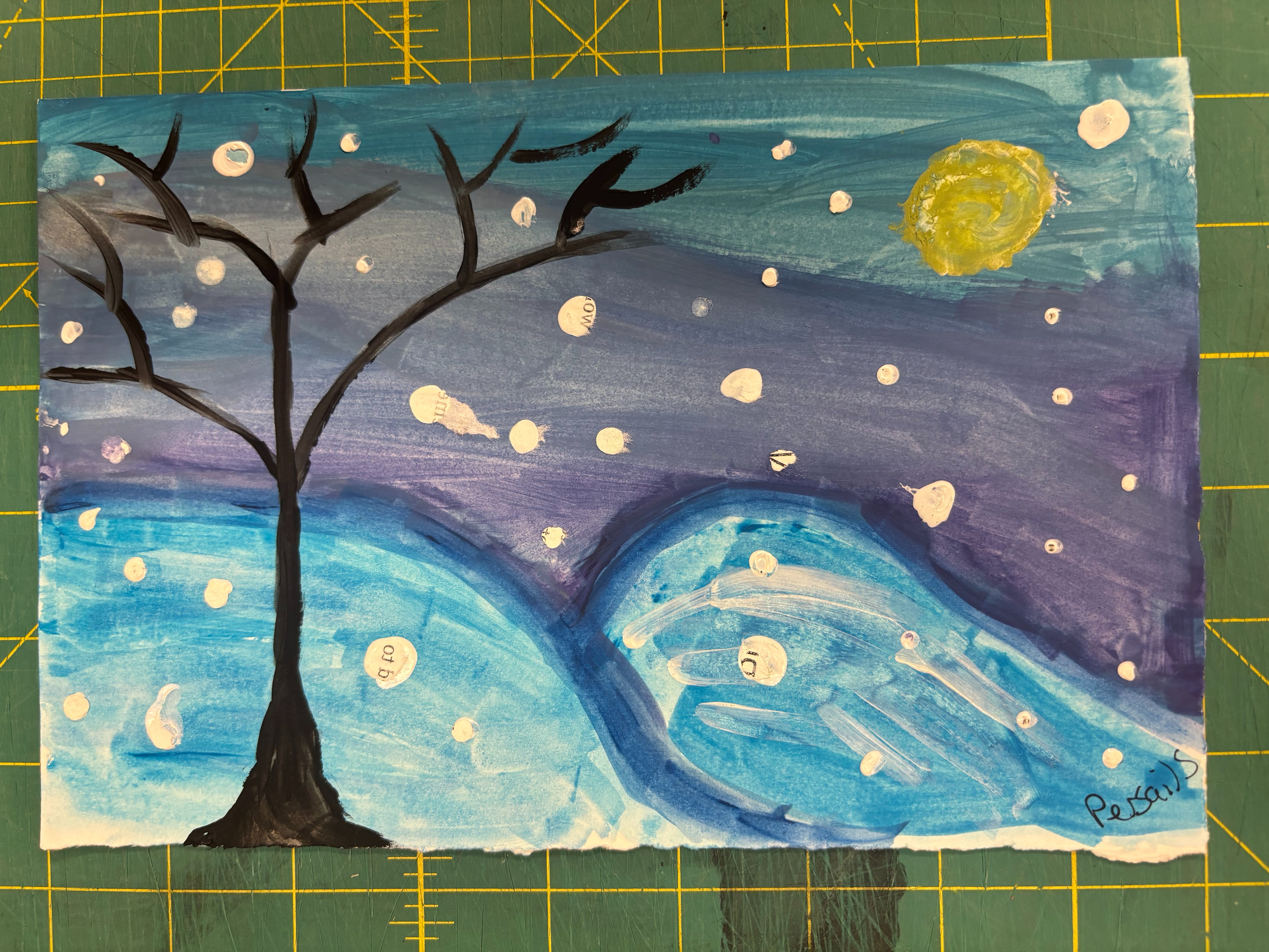 - painting, paint, two dimensional, nature, representational, landscape, winter, seasonal