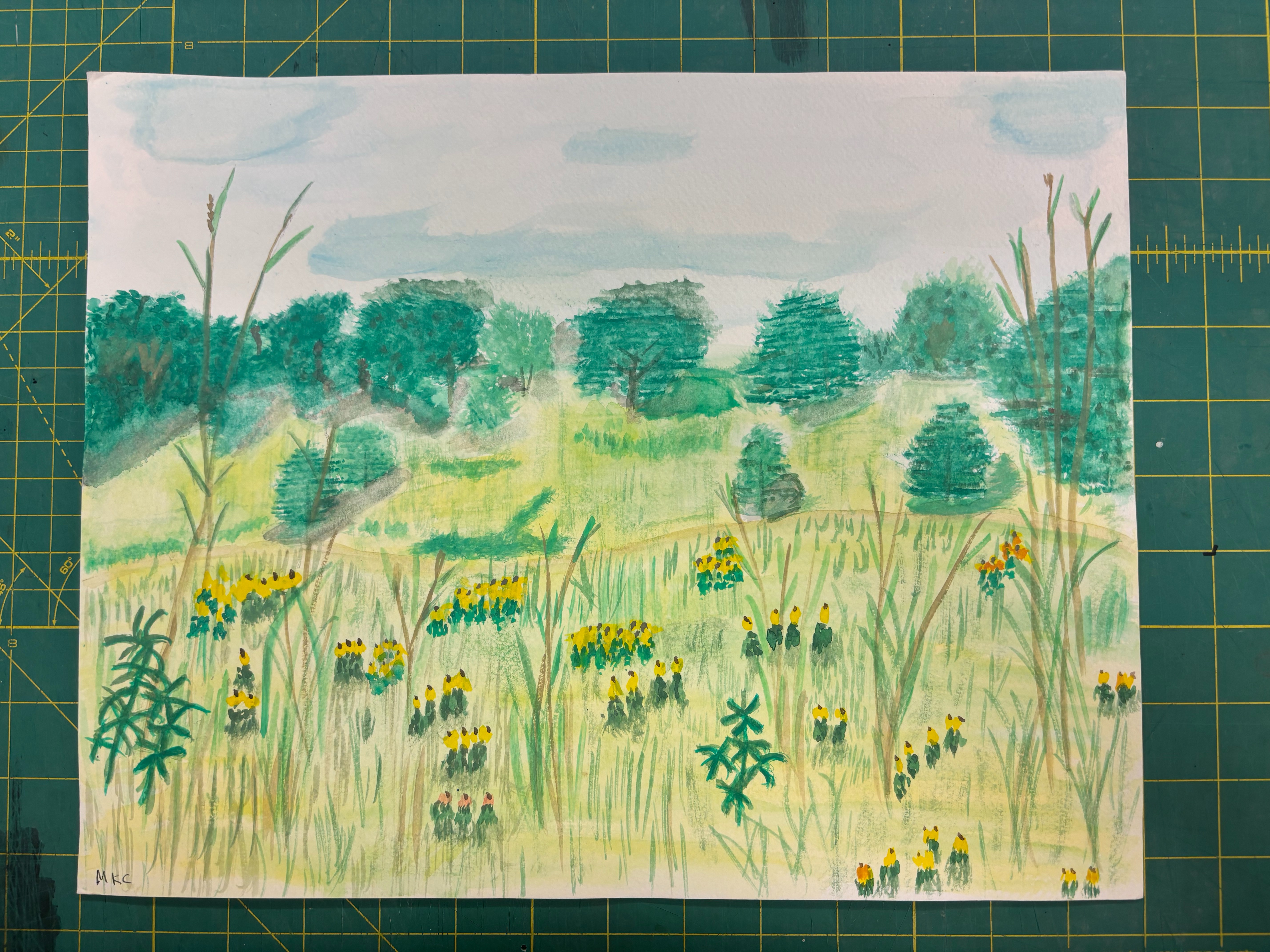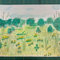 - green landscape with yellow flowers