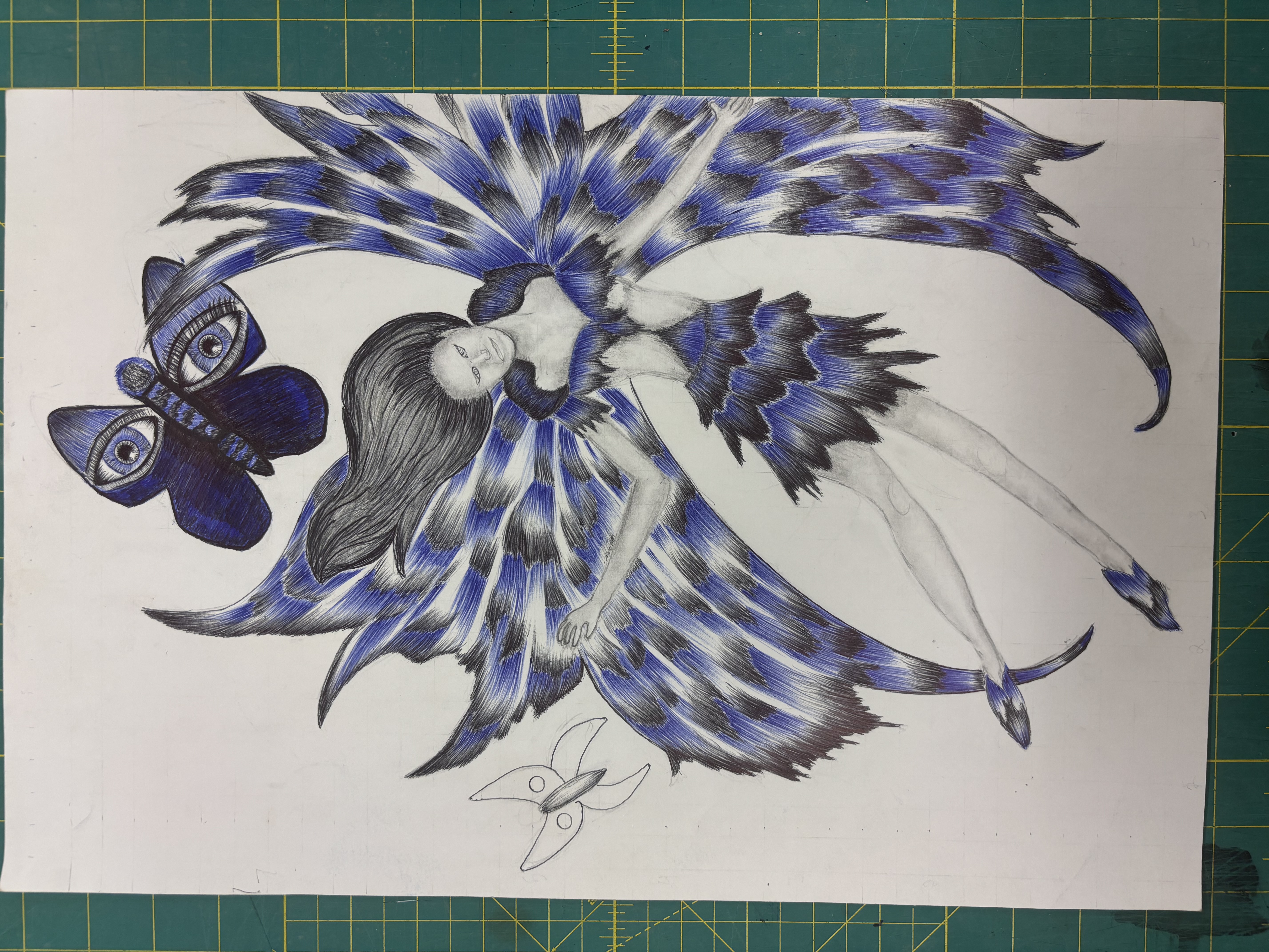 - drawing, pen, fantasy, women, animals, fairies, two dimensional, representational