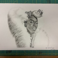 - drawing, pencil, representational, two dimensional, women, portrait, musician, celebrity