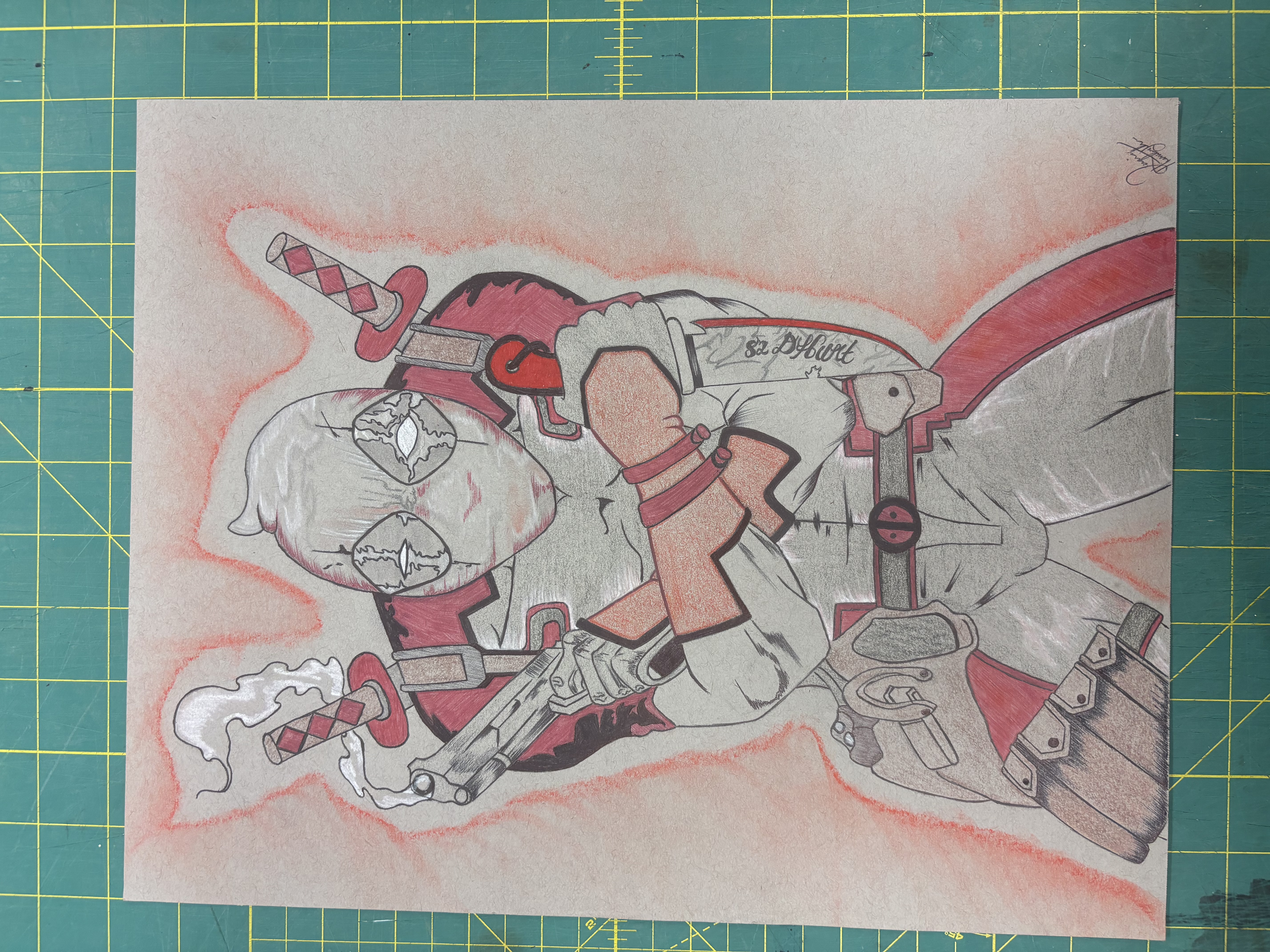 - drawing, colored pencil, representational, two dimensional, super heroes, portrait, comics